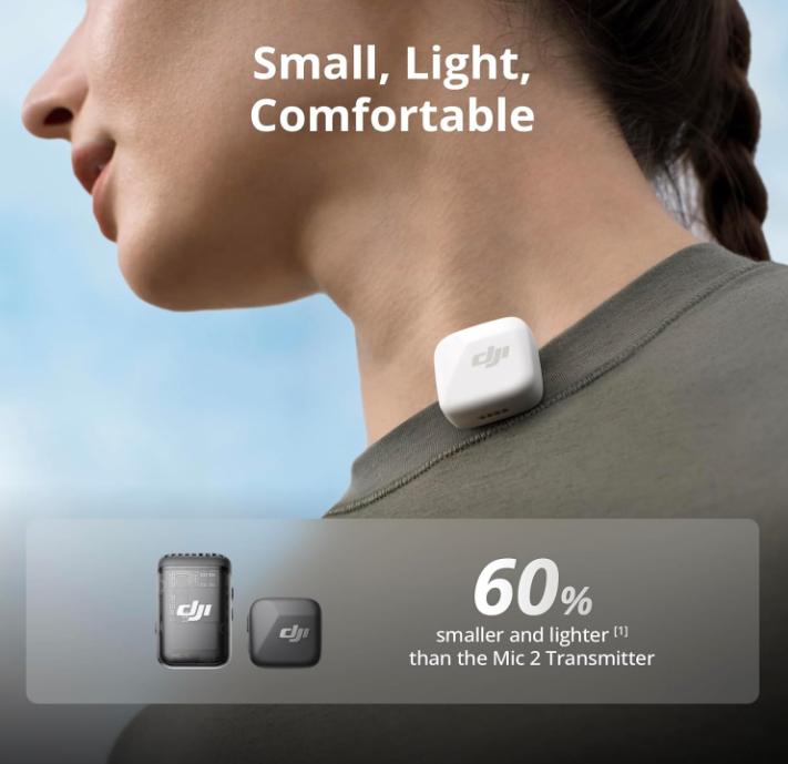 Each transmitter weighs just 10g, making it discreet and comfortable for on-camera use. With a 400m wireless transmission range, 48kHz sampling rate, and 120 dB SPL, the DJI Mic Mini ensures clear, detailed sound even in challenging outdoor environments.