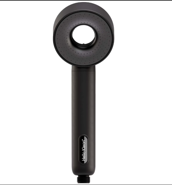 A sleek, modern shower filter that enhances your daily routine by purifying water and protecting skin and hair from hard water effects—all in a stylish matte-black finish.