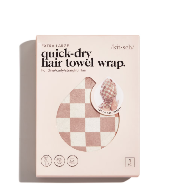 The Kitsch Extra Large Quick-Dry Hair Towel Wrap is a soft, ultra-absorbent microfiber towel designed to gently dry long or thick hair without heat damage. Its terracotta checker print adds a trendy touch to your haircare routine.