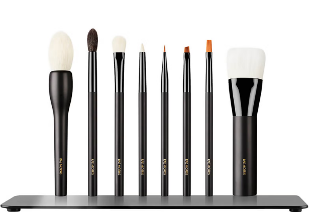 An expertly curated eight-piece magnetic brush set designed by makeup artist Rae Morris. Crafted using Japanese-made micro-crystal fiber and synthetic bristles with sleek maple and cherry wood handles, it offers essential brushes for face, eyes, brows, lips, and foundation—all stored upright on a magnetic plate.