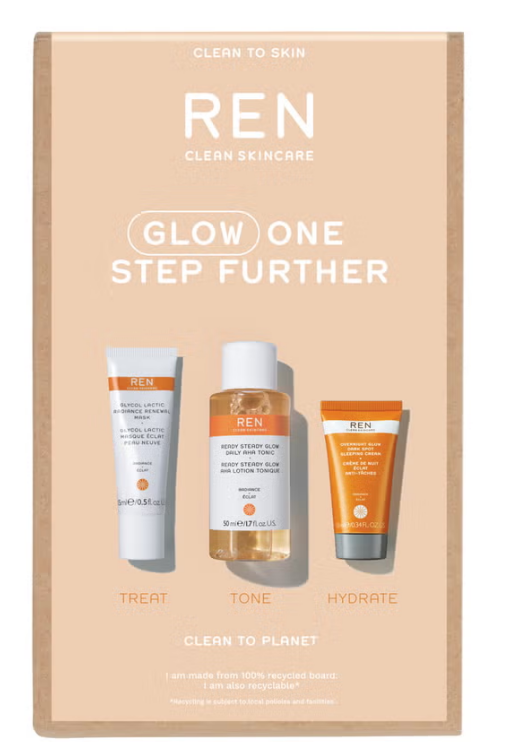 A three-step glow-enhancing kit featuring acids, vitamin C, and nourishing actives to brighten, smooth, and even skin tone.